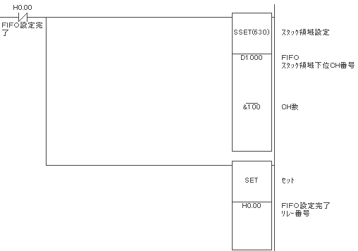 スタック領域の設定命令実行後に停電保持のリレーをセットして1度設定したら